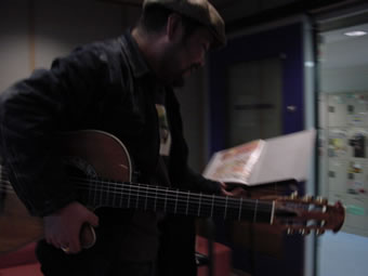 のマドの2人、7月22日以来の2度目の登場となった。今回は来週月曜日午後7時からバナナ・ホールで行う「おいしい音楽Vol.2」のお話しを中心に聞かせてもらった。学生は1000円割引なんてにくいよね、まったく。2人は根っからライブの人たちなのでスタジオでも去年のアルバムの収録曲「君のために」をおいしく聞かせてくれた。まだ間に合います、月曜日午後7時からのバナナホールでのマドのライブはいかが?