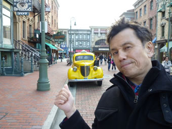 すぐに帰るのももったいないので1人でその後もパークの中をウロウロ右往左往。乱れた髪を床屋さんで整えてもらいましょっかね?ショットをセルフタイマーで撮ってみたり、ちょっと親指1本でイェローキャブを呼び止めたり(ってか、ずっと止まってんだけどね、あは)、キティちゃんのショーをちょいと眺めながら記念撮影などをして楽しんだのでありました。