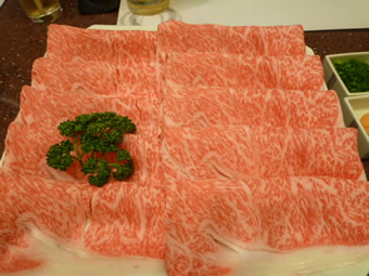 1人じゃ楽しくないのでここはボクを含め7人の侍が勢揃い。佐賀牛のせいろ蒸しが超人気とは聞いていたんだけど、この際やっぱいろいろやっつけようと佐賀牛焼きしゃぶ(下左)と佐賀牛サーロインステーキ(下右)も合わせて注文したっちゅわけ。